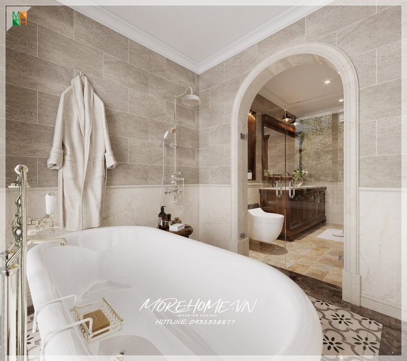 Mẫu thiết kế phòng tắm master được trang bị những sản phẩm nội thất vệ sinh hiện đại, cao cấp giúp tạo nên không gian thư giãn sang trọng, hiện đại và thoải mái cho gia chủ.